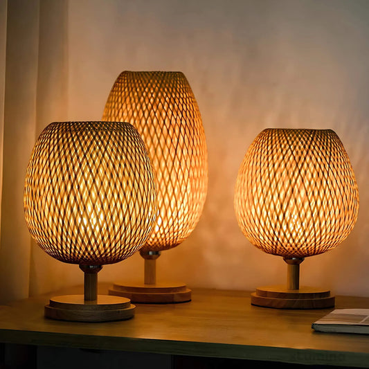 WovenGlow - Rattan Kugel Tischlampe