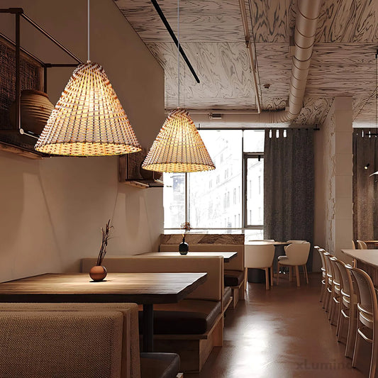 Boho Hängelampe - Handgewebtes Rattan