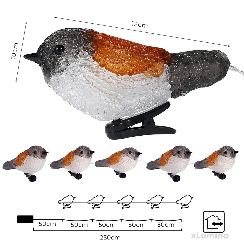Verleihen Sie Ihrem Garten oder Balkon eine magische Atmosphäre mit der FeatherBright Volieren Lichterkette. Mit fünf bezaubernden Acrylvögeln in verschiedenen Farben, ist diese wetterfeste Lichterkette perfekt für den Innen- und Außenbereich geeignet.