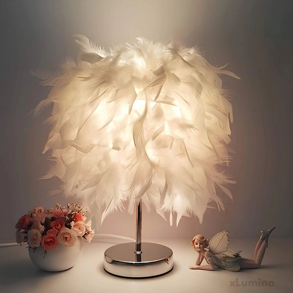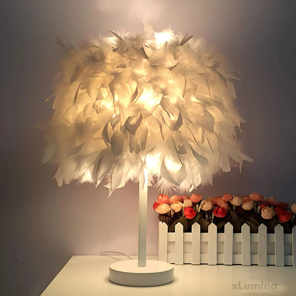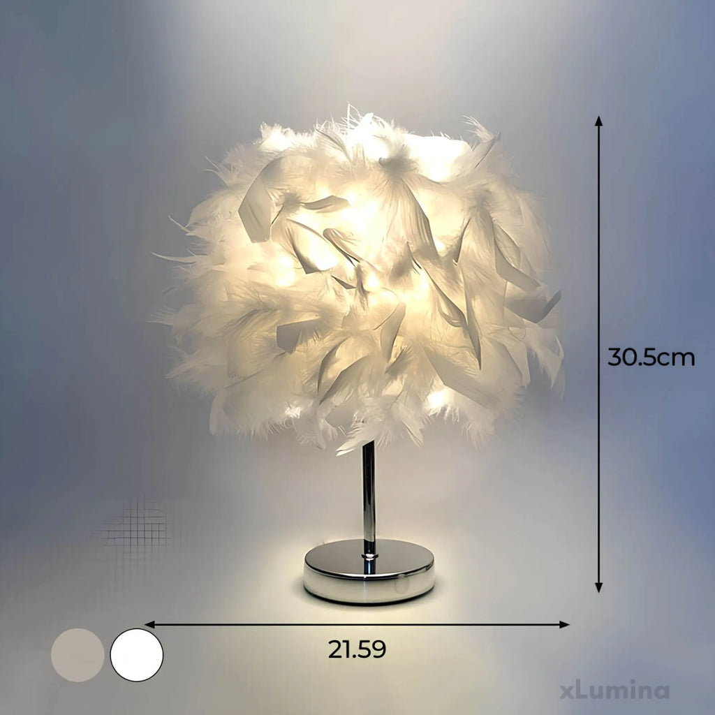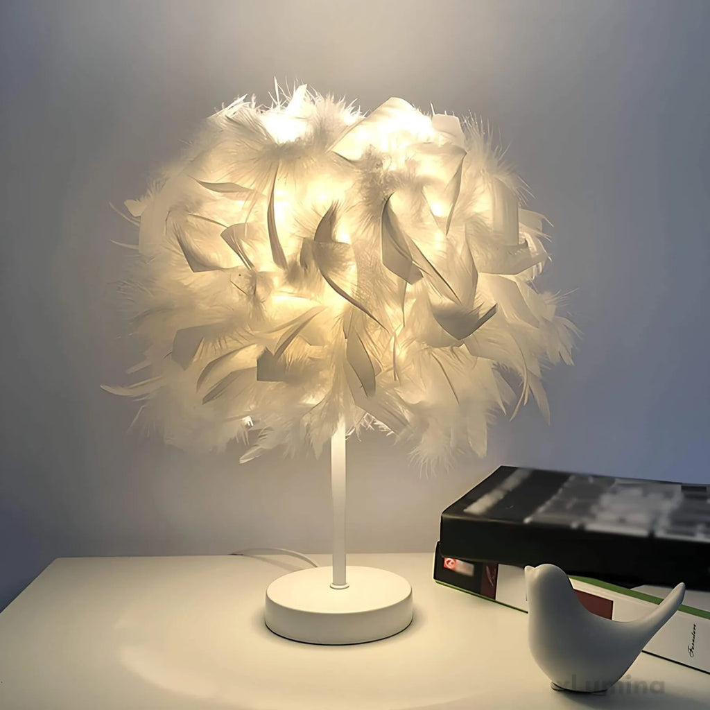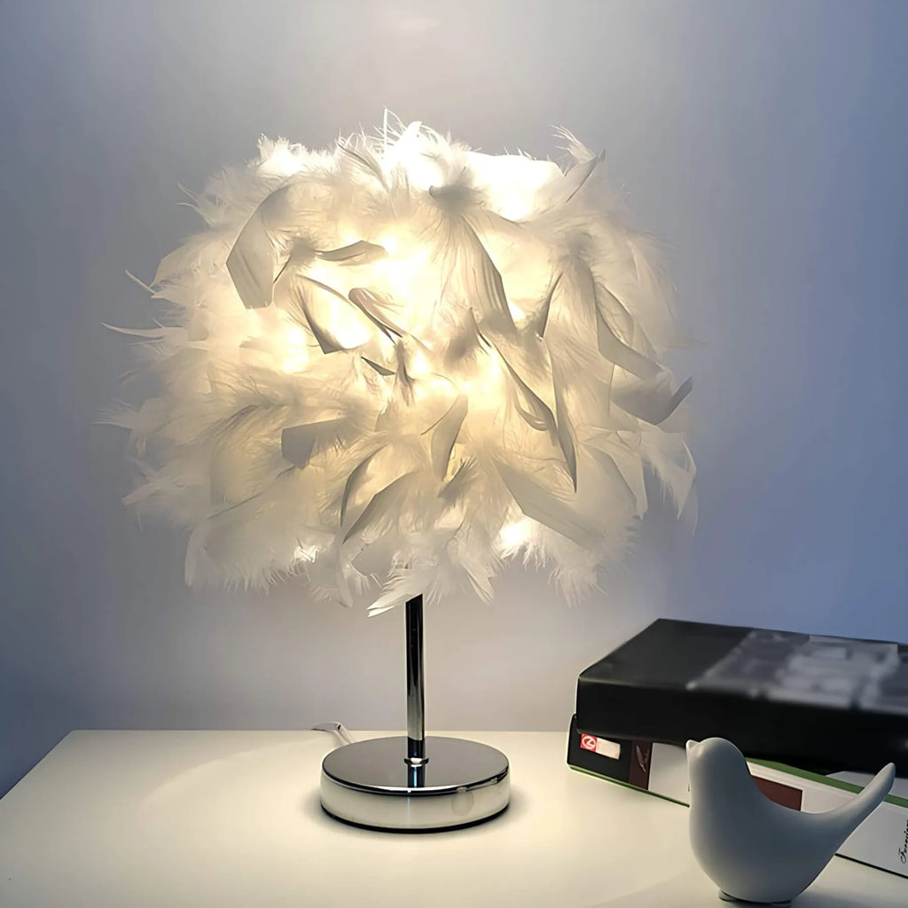 FederGlanz - Runde Tischlampe mit Federn