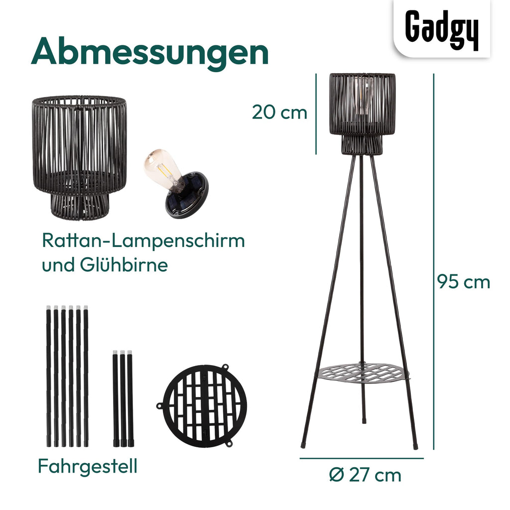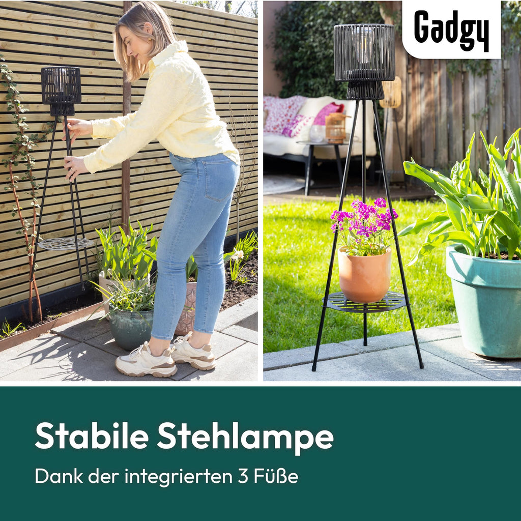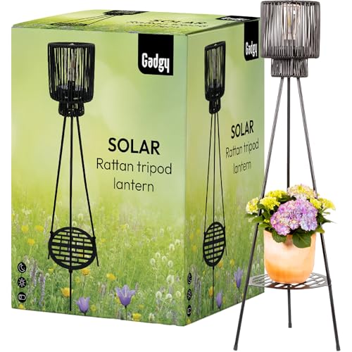 alt="Gadgy Outdoor Stehlampe LED Solar mit Blumenständer – Wasserdichte Stehlampe für Garten & Balkon – Solarbetriebene Standleuchte für Nachhaltige Beleuchtung – LED Außenstehleuchte Dreibein">