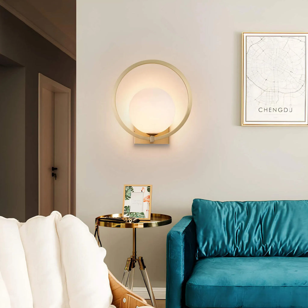 Die Gloedsphere Wandlampe mit runder Glaskugel bringt moderne Eleganz in jeden Raum. Ihr minimalistisches Design kombiniert eine sanfte Glaskugel mit einem stabilen Metallrahmen und bietet stilvolle Beleuchtung für Wohn- und Schlafräume. Dank ihres vielseitigen Designs ist diese Lampe perfekt für moderne und klassische Einrichtungsstile geeignet.