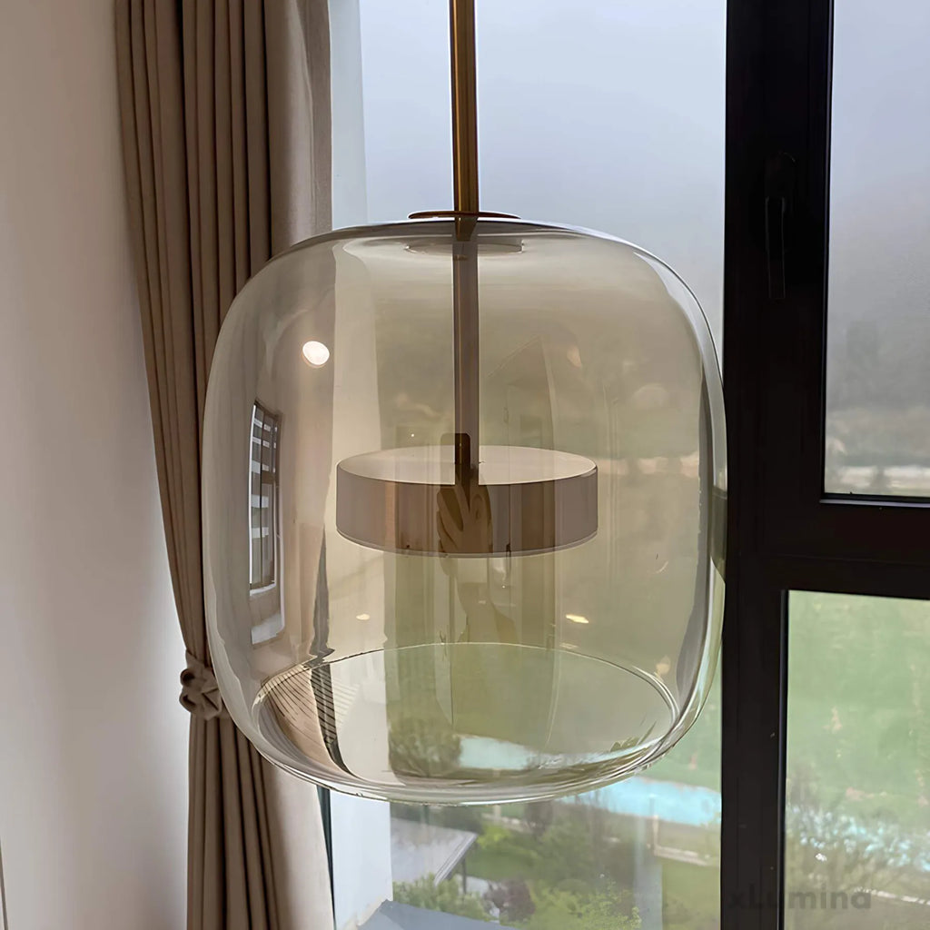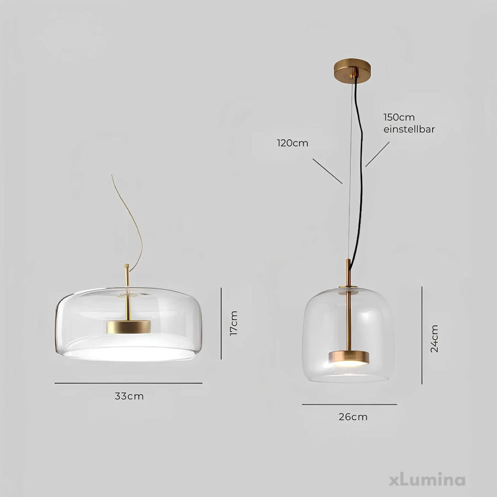 alt="hailie-retro-led-haengeleuchte-goldene-amber-metall-glas-schlafzimmerbeleuchtung-xlumina">