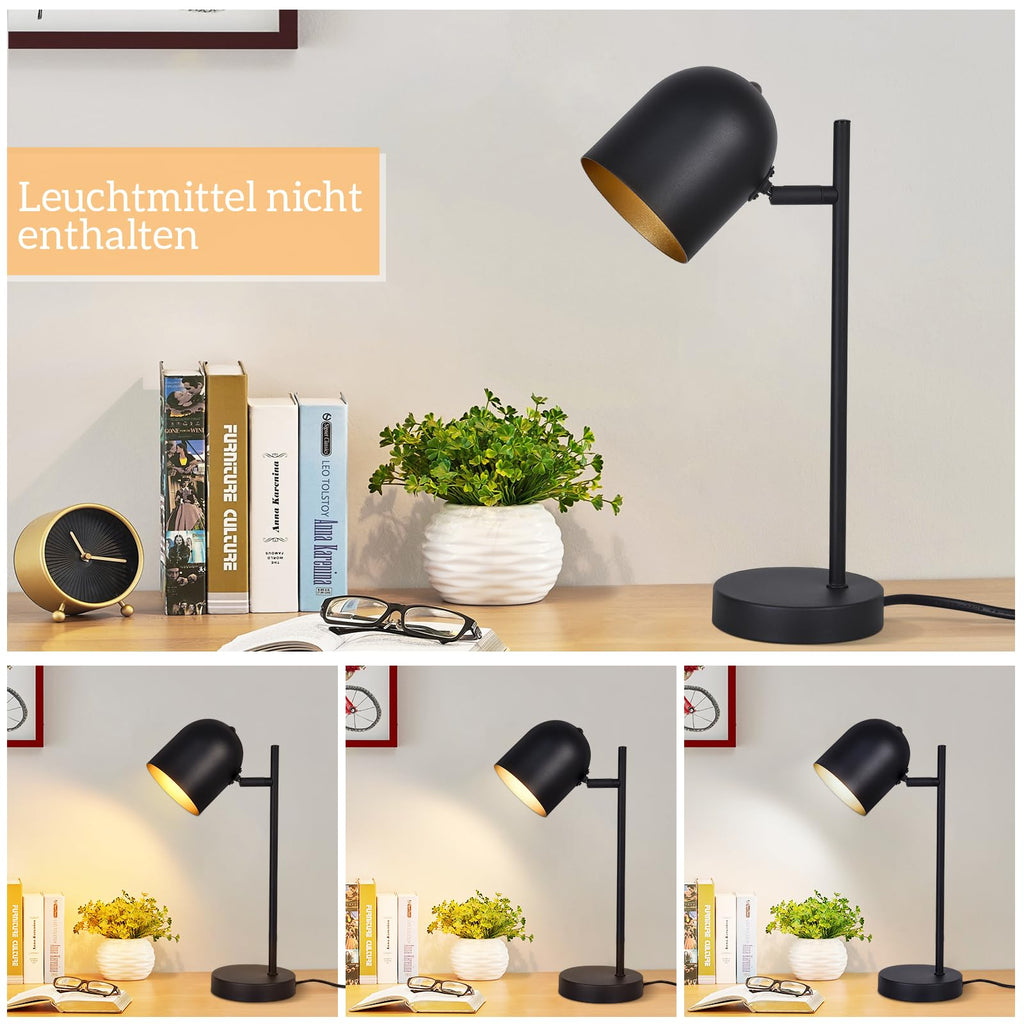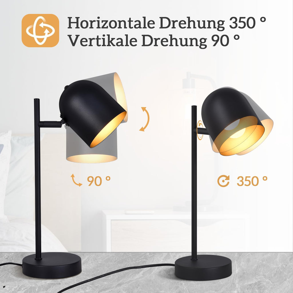Kowanie 2er Tischlampe Vintage retro Nachttischlampe: Tischleuchte Wohnzimmer industrial in Schwarz Gold aus Metall E14 rustikal Nachttischleuchte mit Kabel für Schlafzimmer - Ohne Leuchtmittel