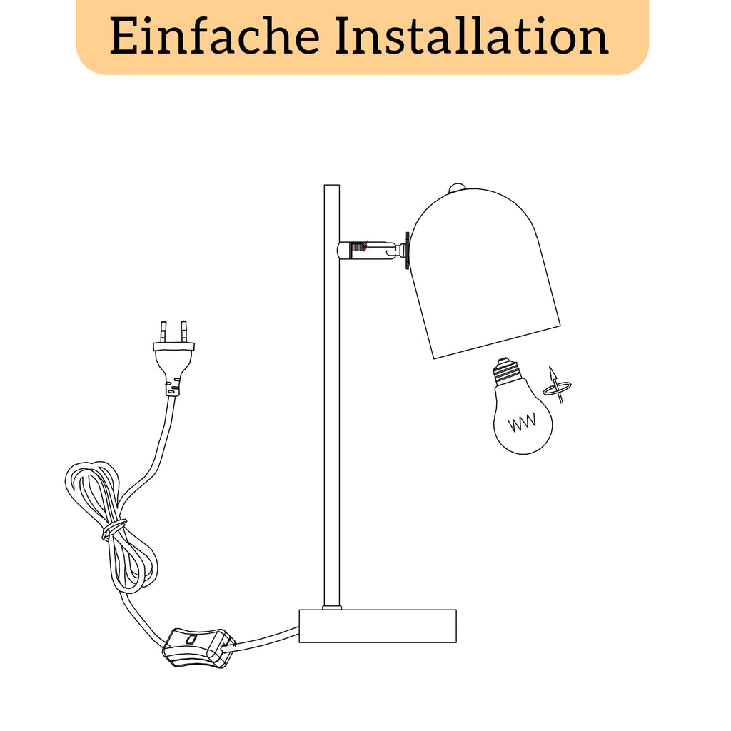 • Technische Details: Mit einer Höhe von ca. 35 cm und einer Kabellänge von 160 cm ist diese Nachttischlampe kompakt genug, um auf einem Tisch, Nachttisch oder sogar in einem Regal platziert zu werden. Die Tischleuchte verfügt über eine Anschlussspannung von 220-240 Volt und bietet eine maximale Leistung von 40 Watt. Der verwendete Sockel ist ein E14