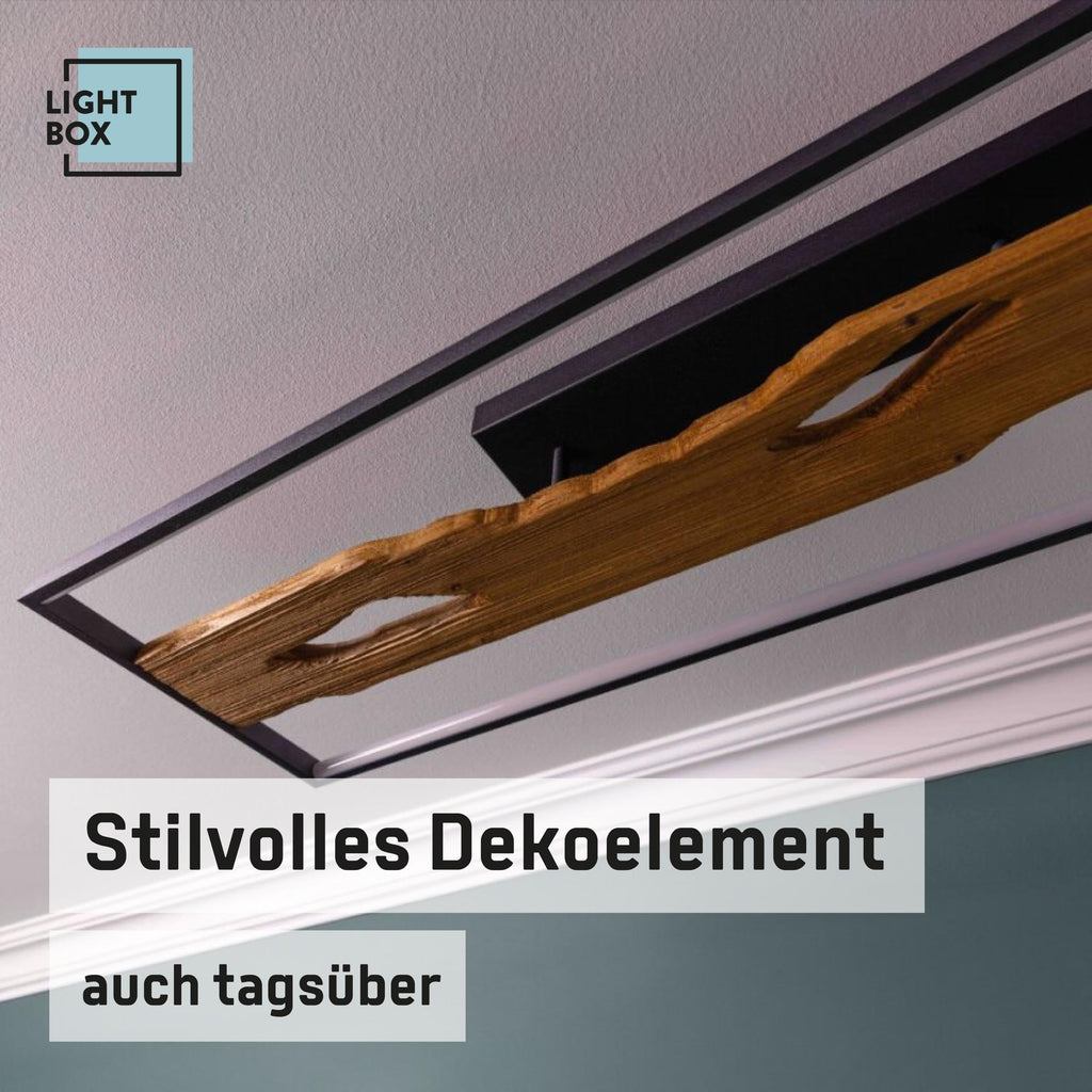 alt="Lightbox LED Deckenlampe im Landhaus Stil | dimmbare Deckenleuchte für Wohnzimmer oder Schlafzimmer in warm-weiß mit 3000 K, 6600 Lumen | aus Aluminium/Metall/Holz, in Schwarz/Braun">