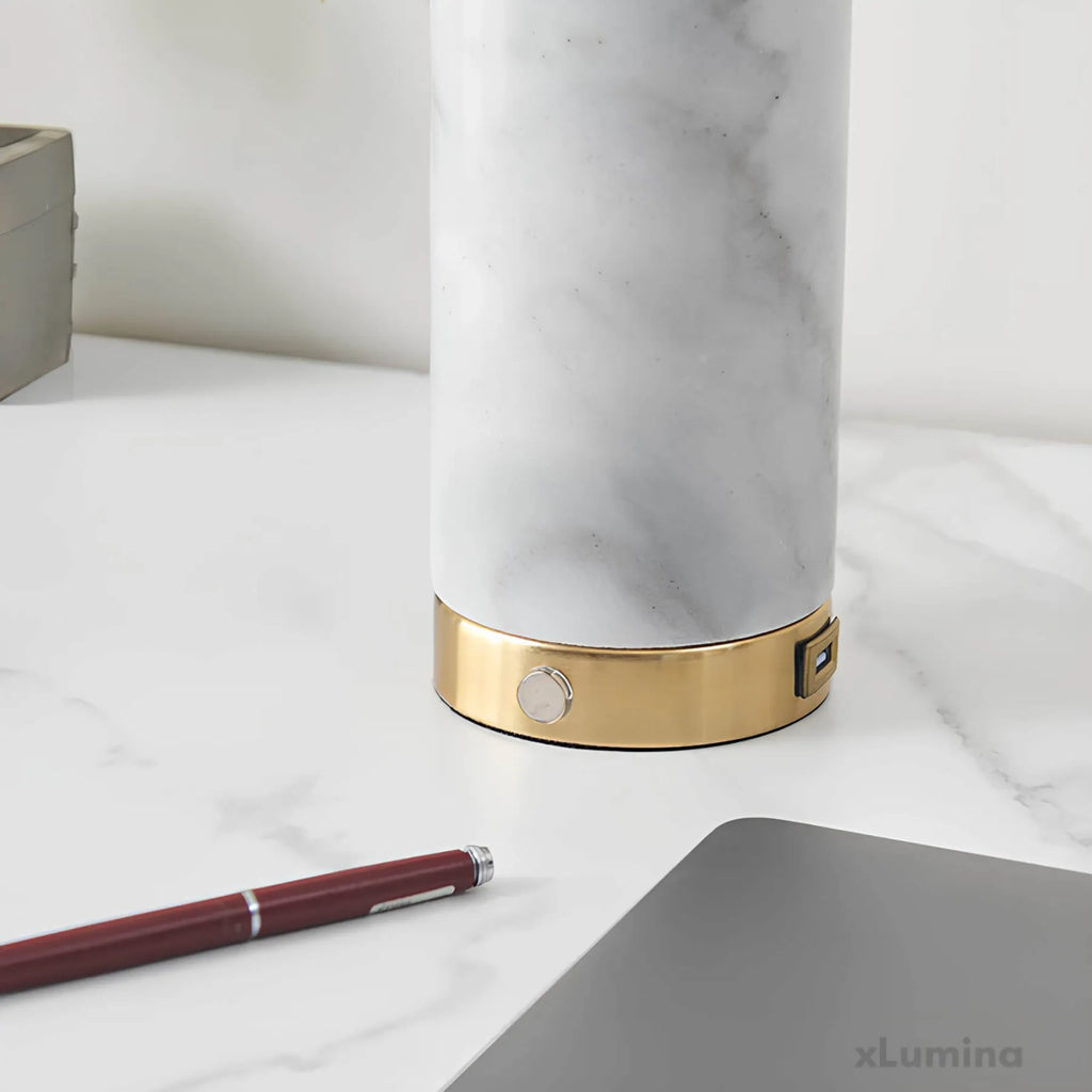 Die Marble Glow Tischlampe verbindet luxuriöses Design mit moderner Funktionalität. Mit einem eleganten Marmorsockel und einem schlanken Lampenschirm bietet diese Lampe eine zeitlose Ergänzung für jedes Zuhause oder Büro.