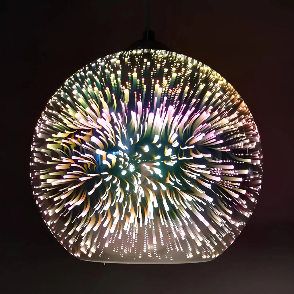 Unsere einzigartige 3D-Feuerwerk-Glas-Hängelampe verleiht jedem Raum eine besondere Atmosphäre. Mit einem lebendigen Feuerwerk-Effekt, der in verschiedenen Farben leuchtet, ist diese Lampe nicht nur eine Lichtquelle, sondern auch ein Kunstwerk. Ideal für Wohnzimmer, Esszimmer oder Schlafzimmer.