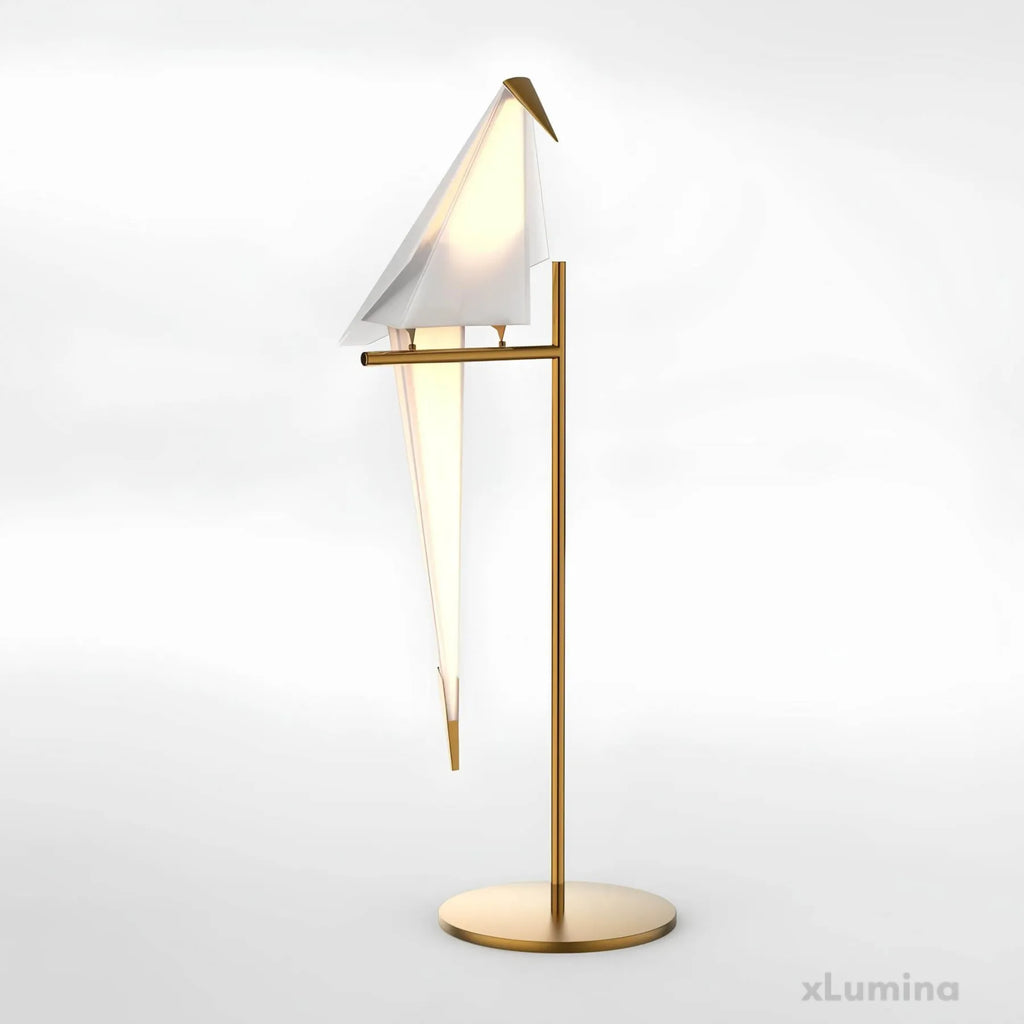 alt="origami-kranich-goldlampe-tischleuchte-elegantes-design-modern-wohnzimmer-xlumina">
