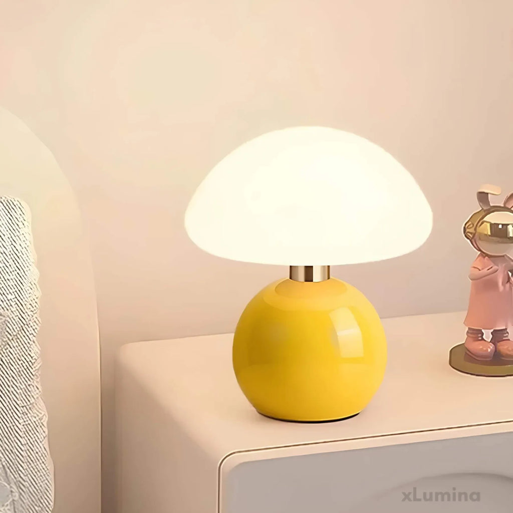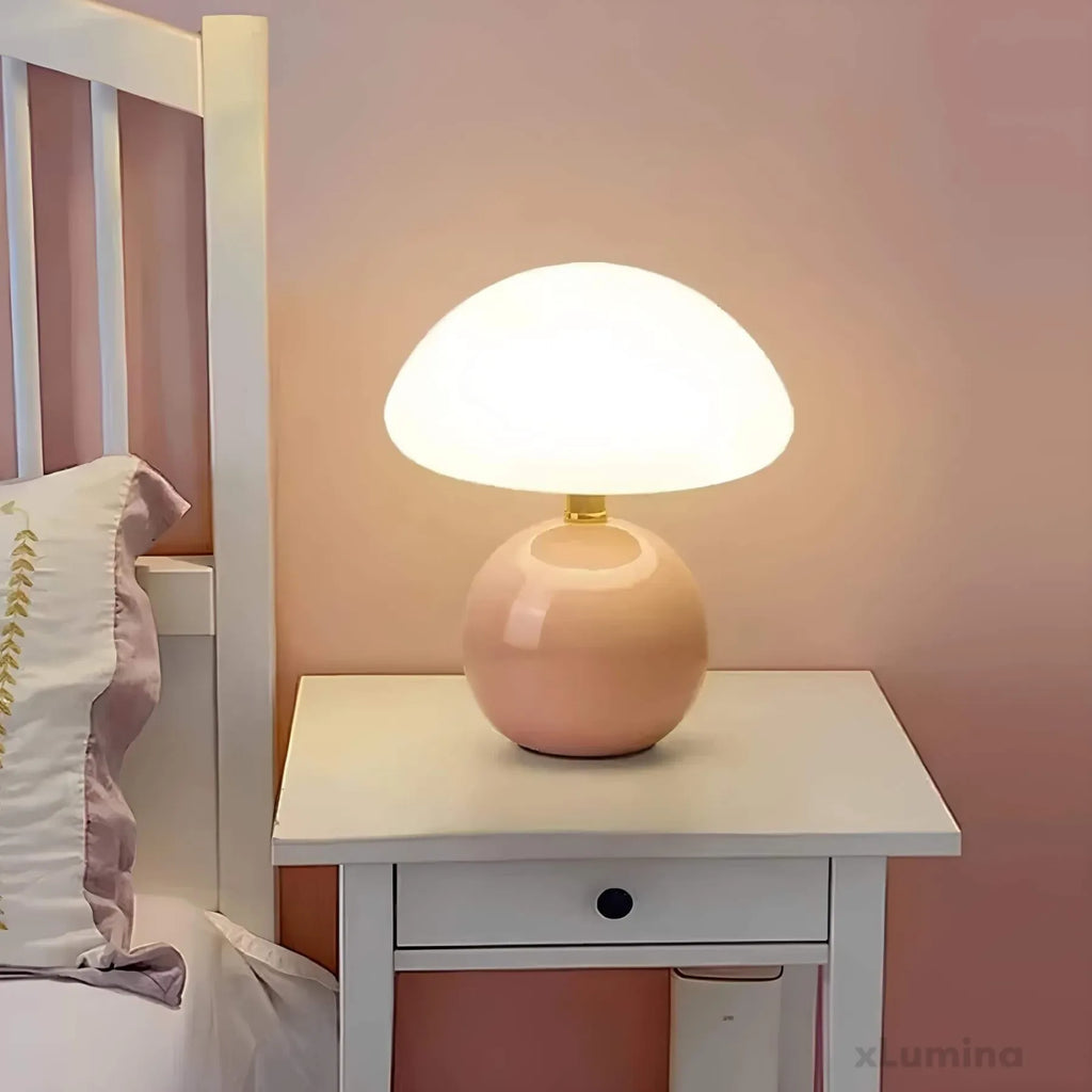 alt="paddenstoel-kleine-tischlampe-keramik-tischleuchte-creme-beleuchtung-pilzform-windkeramik-xlumina">