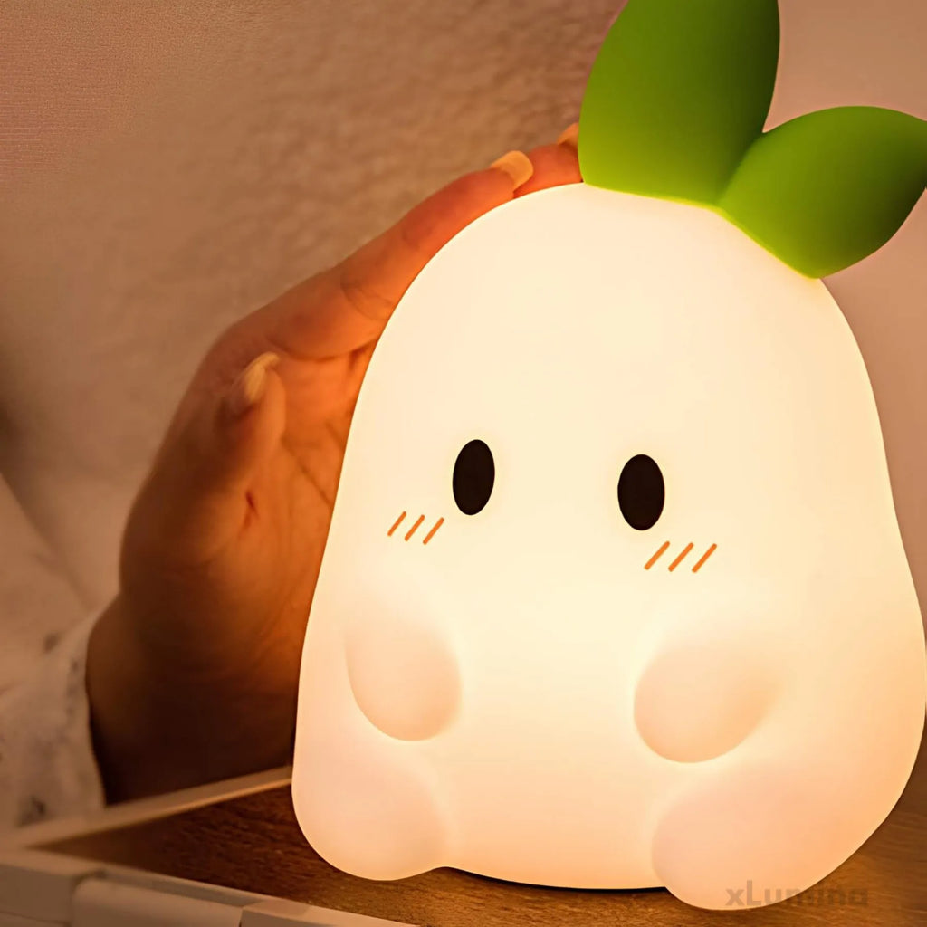 alt="radieschen-led-nachtlicht-silikon-lampe-kinder-niedlich-dimmbar-geschenk-xlumina">