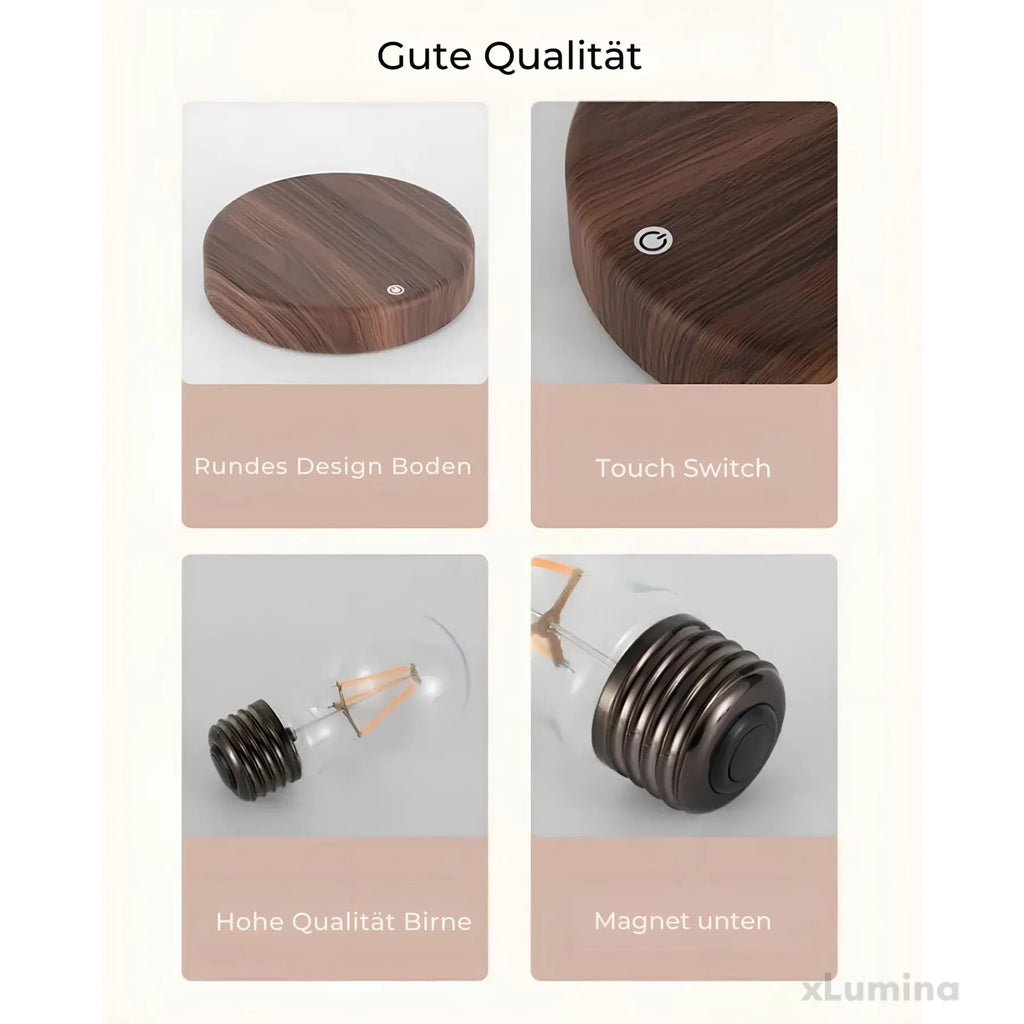 Erleben Sie die Magie der Schwebenden Glühbirne - Tischlampe mit Holzsockel. Diese innovative Leuchte kombiniert modernes Design mit beeindruckender Technologie, um Ihr Zuhause in ein stilvolles Ambiente zu verwandeln.