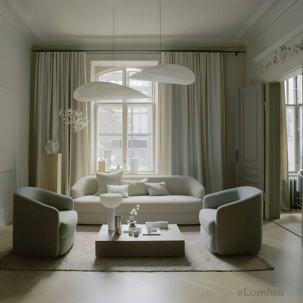 - Elegantes Design: Die SilkWave-Leuchte beeindruckt mit ihrem eleganten, fließenden Design, das von den sanften Wellen der Seide inspiriert ist. Ihre organische Form und das sanft verteilte Licht schaffen eine beruhigende und einladende Atmosphäre in jedem Raum.