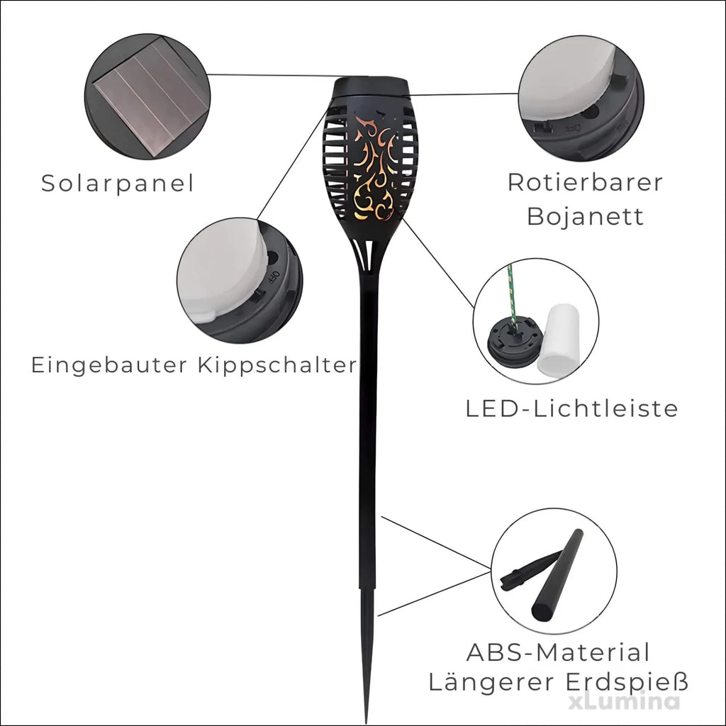 Erleben Sie die Magie des Flammeneffekts mit unserer Solar-Fackel. Diese energieeffiziente LED-Leuchte schafft eine warme, einladende Atmosphäre in Ihrem Außenbereich.
