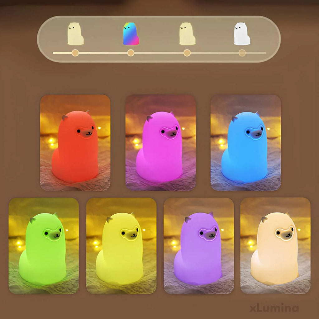 Das Squishy Alpaka LED Nachtlicht bietet beruhigendes, warmweißes und farbwechselndes Licht, das jedem Raum eine gemütliche Atmosphäre verleiht. Mit seinem niedlichen und weichen Design ist es ideal für Kinderzimmer, als Geschenk oder einfach zum Entspannen. Der hochwertige Silikon-Alpaka-Körper ist robust, BPA-frei und perfekt zum Kuscheln.