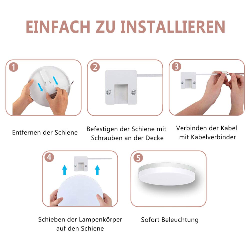 - 【Einfache Montage】► Einfach auf die Montageschiene schieben und sofort funktionsfähig. Die Installationsmethode dieser LED Lampe brauchen Sie keine Hilfe vom Elektriker. Deckenleuchten wird auch sehr bequem für eine Person das Licht unabhängig zu installieren.