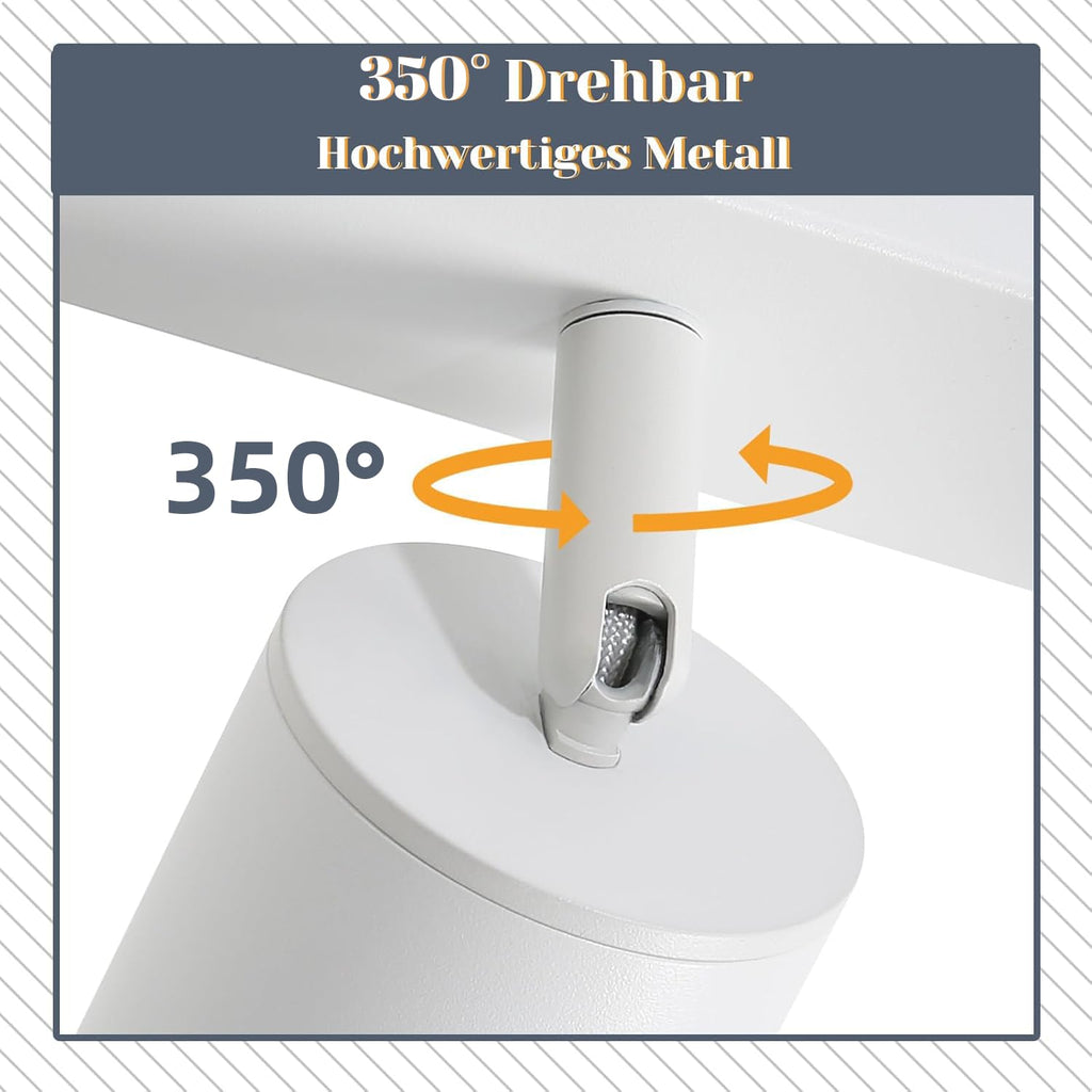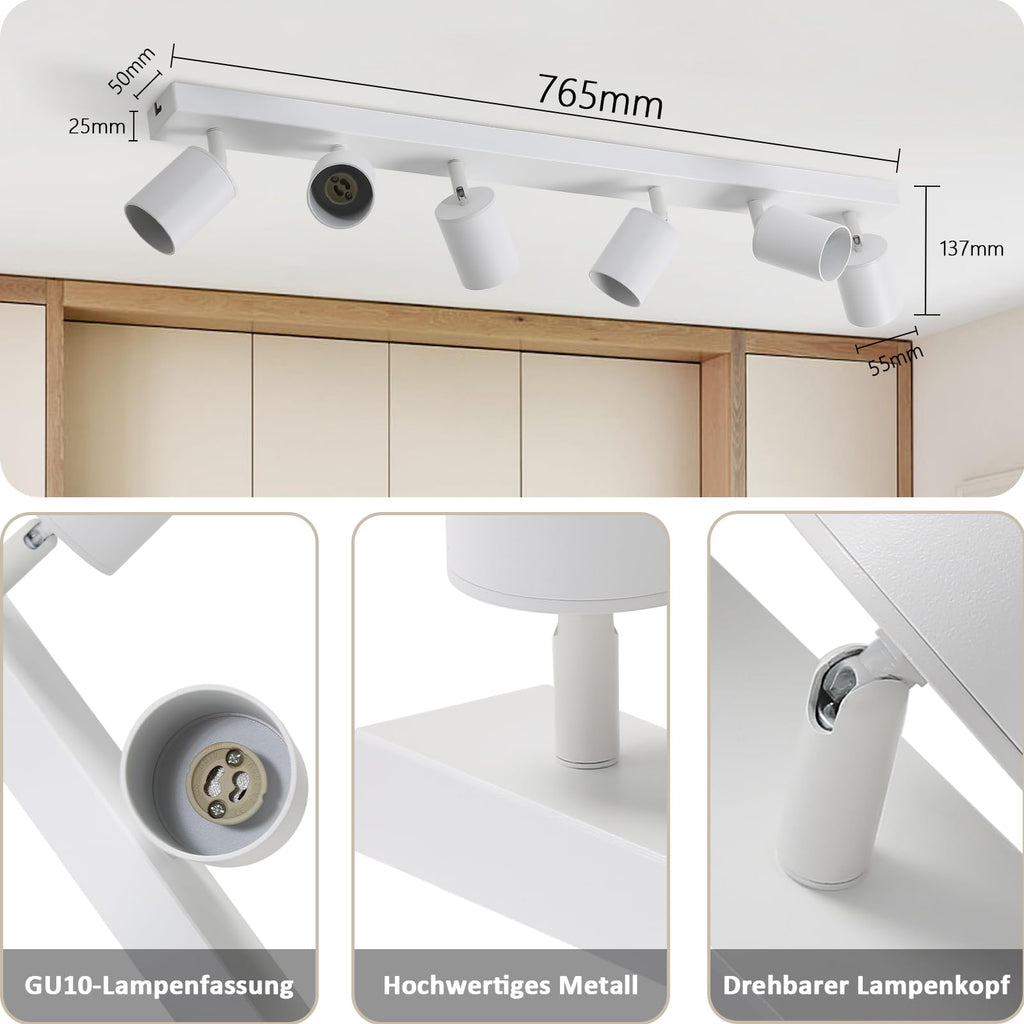 ZMH Deckenleuchte 6 flammig Deckenstrahler Weiß : GU10 Deckenlampe 350°Schwenkbar Deckenspots Modern Spots Küchenlampe Strahler Industrial für Wohnzimmer Schlafzimmer Küche - Ohne Leuchtmittel